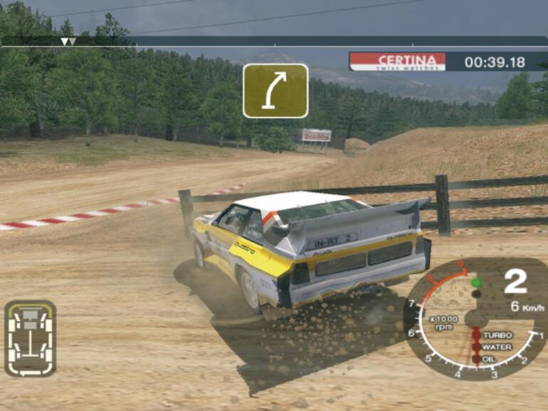 Die Fahrzeuge werden sehr detailliert dargestellt, die triste Umgebungsgrafik konnte aber schon zum Release der Windows-Version nicht vom Hocker reißen. So bestehen beispielsweise die Zuschauer am Streckenrand aus einfachen 2D-Bitmap-Grafiken. Der Sound indes gefällt: Insbesondere die Ansagen des Beifahrers über den Streckenverlauf lassen echte Rallye-Stimmung aufkommen. Allerdings „verschluckte“ sich die Sound-Ausgabe auf unserem Testrechner, einem MacBook Pro der ersten Generation, mehrmals.