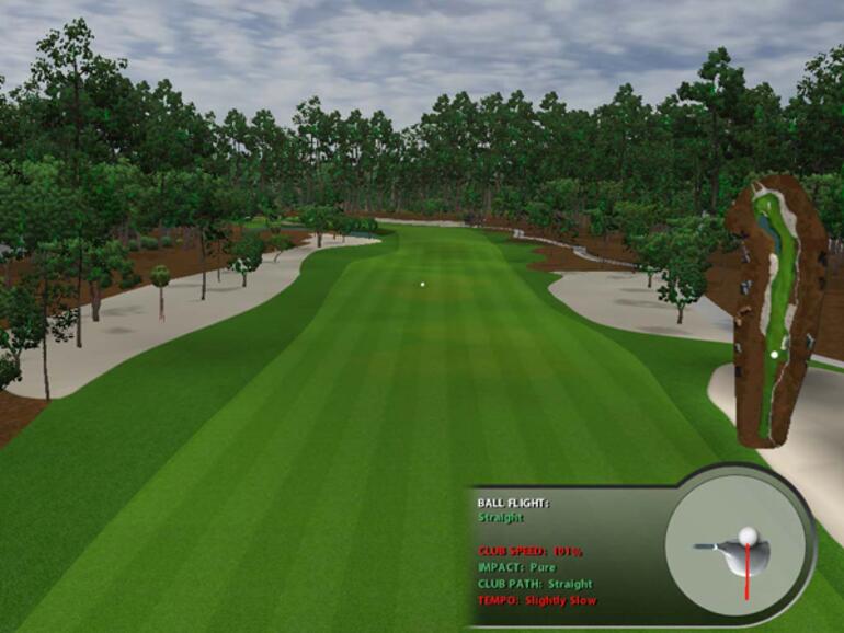 Für eine Simulation ist die Grafik wirklich ein Hingucker, denn der Golfplatz ist recht detailreich und lebendig gestaltet. Insgesamt stehen über ein Dutzend unterschiedliche Plätze zur Auswahl, darunter Klassiker wie Pebble Beach Golf oder Sherwood Country Club, aber auch diverse Fantasieklubs. Wem das noch nicht ausreicht, der kann mittels des Kurseditors vorhandene Kurse modifizieren oder kurzerhand einen eigenen Kurs in die Landschaft setzen. Dabei sind der Fantasie in Sachen Platzierung von Bunkern, Breite des Fairways oder Dichte der Bäume nur wenige Grenzen gesetzt. Für Atmosphäre auf dem Grün sorgen nicht nur die neuerdings freudig oder enttäuscht dreinblickenden Gegenspieler, sondern auch die Kommentatoren, denen zuzuhören sich lohnt, denn manchmal gibt der Kommentator einige gute Hinweise für den anstehenden Schlag.