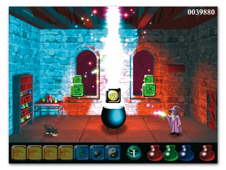 Ist genug Farbe eingesammelt, geht es in eine Bonusrunde: Wer sich dort gut durchschießt, hat die Chance auf ein Extraleben. Nach der Bonusrunde verwandelt sich der Wizball zurück in den Zauber, der Catellite in eine Katze und der Spieler kann ein Extra als permanent auswählen. Vor Schüssen (aber nicht vor Kollisionen mit Gegnern) sicher ist der Wizball in Bodennähe. Wizball ist ein Remake des C64-Spiels mit aufpolierten Grafiken und Sound sowie diversen Effekten. Die Titelmusik von Martin Galway wurde ebenfalls adaptiert.
