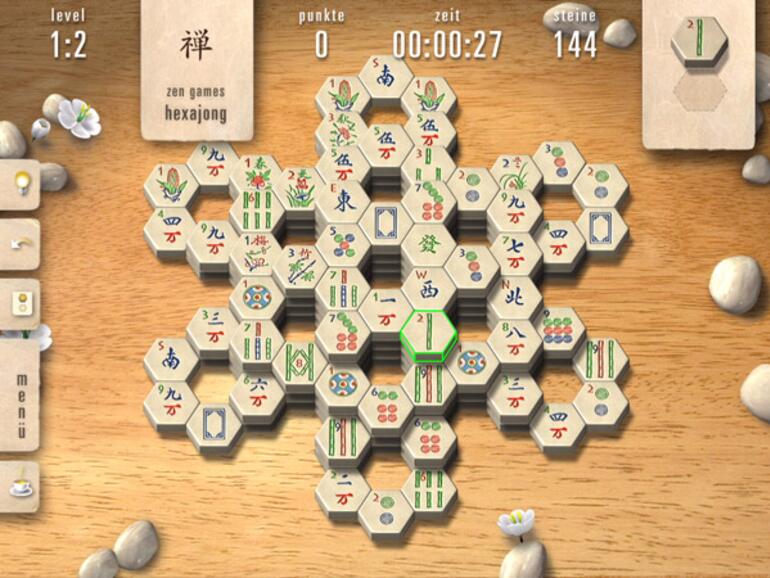 Doch Computerumsetzungen von Mahjong scheint es so viele wie Reiskörner in China zu geben. Heutzutage sollte ein Klon schon etwas Eigenständiges bieten, um nicht im Steindschungel unterzugehen. Das in den Zen Games enthaltene Hexajong verwendet aus diesem Grunde sechseckige Spielsteine, was in etwa denselben Unterschied macht, als ob man mit eckigen oder runden Stäbchen isst. Der Spielablauf bleibt naturgemäß unangetastet. So hätte der, im übrigen durchaus talentierte Grafikdesigner, auch kreuzförmige oder achteckige Spielstein-Varianten erfinden können, trotzdem wäre das Spielprinzip gleich geblieben.