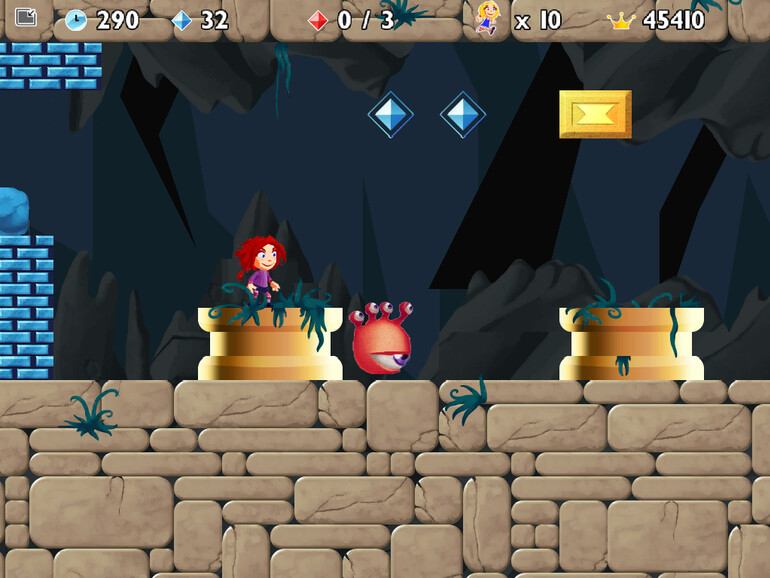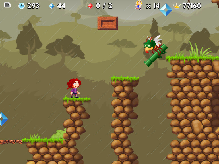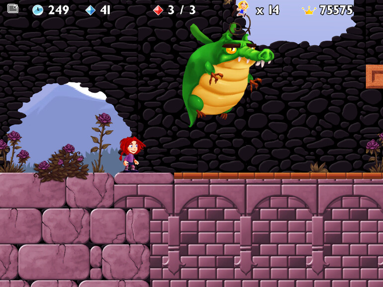 Die iPhone-Version gehört nach wie vor zu den besten Hüpfspielen für iOS, auf dem Mac gibt es natürlich echte Tasten, aber leider werden, wie bei vielen iOS-Portierungen, Gamepads nicht unterstützt. Spielerisch ist Giana Sisters unverändert, Giana hüpft durch die 80 Level, sammelt Diamanten ein und erledigt Gegner per Sprung auf dem Kopf oder Feuerball. Mit dem Kaugummi schwebt sie in einer Blase nach oben und mit der Cola-Flascha kann sie Blöcke zerstören. Der Endgegner ist ein großer Drache, der nicht mit Feuerbällen ausgeschaltet werden kann.