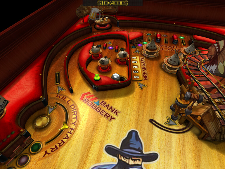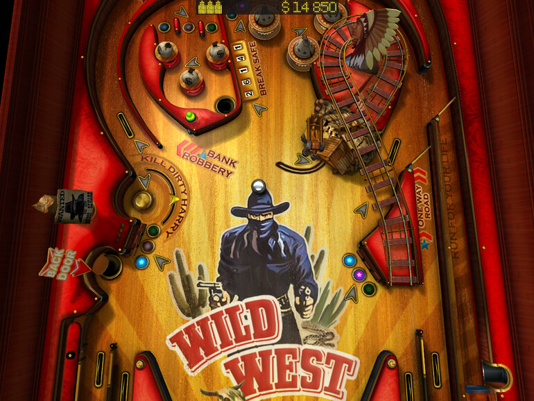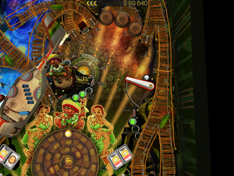 Pinball HD ist ein 3D-Flipper und vergrößert dynamisch den Bereich, in dem sich gerade die Kugel befinden. Dies kann verwirren, aber mit der C-Taste lässt sich zwischen den Kamera-Modi (Zoom oder Volldarstellung) wechseln. Wie auf dem iPad gibt es drei Tische: Wild West, The Deep und Jungle Style. Jungle Style ist von den drei Tischen der komplexeste und gleichzeitig unübersichtlichste.