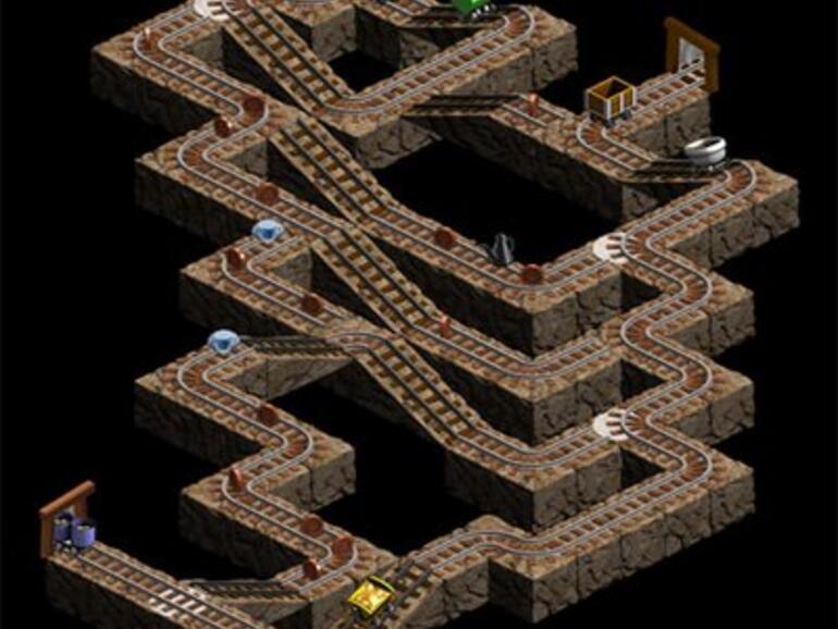 Die Lore lässt sich allerdings nicht direkt steuern, sondern nur die Gleise: An bestimmten Stellen lassen sich diese umstellen, um die Lore in eine andere Richtung zu lenken. Dazu reicht eine Taste, denn es wird immer nur die nächste Stelle bedient, an der eine Abzweigun nicht, dennoch ist das Spiel nicht ganz einfach, denn das Zeitlimit ist so knapp gesetzt, dass der Spieler möglichst schnell den kürzesten Weg zum Gold finden muss.