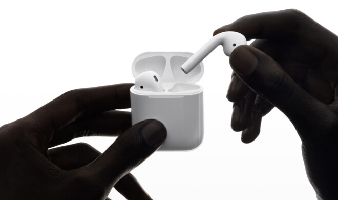 Die Apple AirPods kommen gänzlich ohne Kabel aus und sieht Apples ersten Wireless Kopfhörer. (Bild: Stefan Molz)