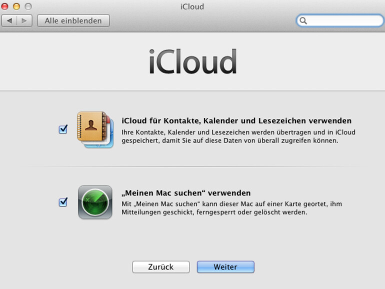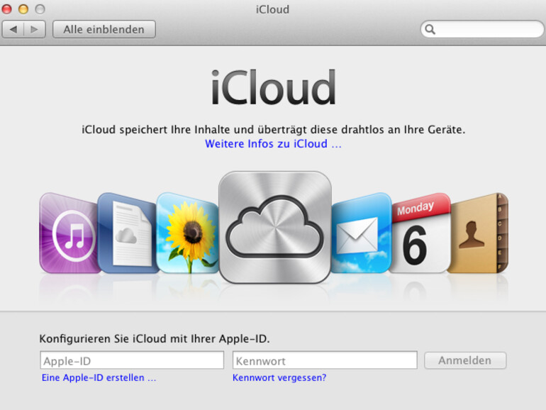 Rufen Sie in den Systemeinstellungen die Kategorie iCloud auf. Voraussetzung ist Mac OS X 10.7.2.