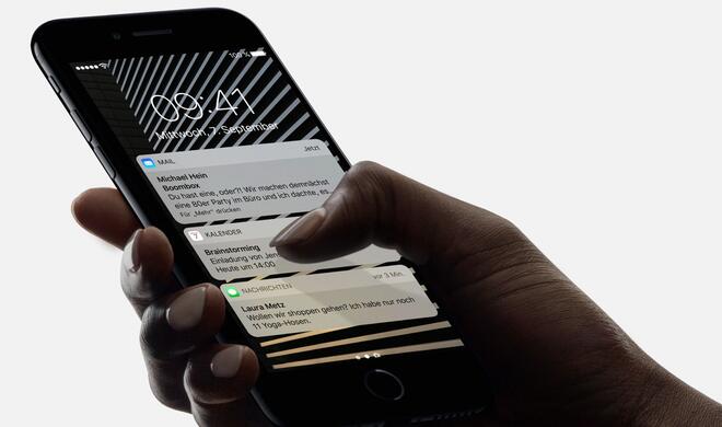 Seit dem iPhone 6s erkennt das Smartphone, wie tief der Nutzer auf den Bildschirm drückt. Das wird für verschiedene Features verwendet, in der Regel für Abkürzungen für häufig genutzte Funktionen oder für eine kurze Vorschau. In iOS 10 wurde das noch weiter ausgebaut. So gut wie alle Systemelemente lassen sich per 3D Touch näher steuern. Bei vorhandenen Kontextmenüs wurden weitere Funktionen hinzugefügt, etwa beim Wetter oder bei der Musik-App. Mit einem 3D-Touch-Druck auf ein Kreuz bei den Benachrichtigungen lassen sich alle auf einmal wegdrücken.