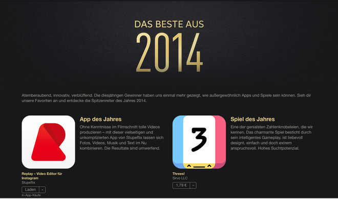 iTunes Store: Die besten Apps aus 2014 Apple hat die Top-10-Charts der besten Apps aus dem Jahr 2014 veröffentlicht. Dabei geht Apple nicht so sehr auf die typischen Verdächtigen ein, sondern - wie...