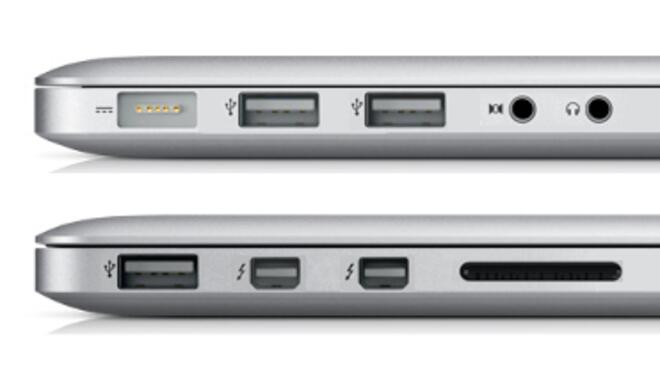 Im gleichen Atemzug wies Apple darauf hin, dass das MacBook Pro in 13 Zoll mit Touch Bar zwar ebenfalls mit vier Thunderbolt-3-Schnittstellen kommt, aber nur zwei davon sind vollwertig nutzbar. Die auf der rechten Seite bieten nicht die volle PCI-Express-Bandbreite. Wer wirklich vier gleichwertige Anschlüsse nutzen möchte, dem bleibt nur der Griff zum 15-Zoll-Modell, bei dem alle Anschlüsse bis zu 40 GBit/s (Thunderbolt) bzw. 10 GBit/s (USB 3.1 Gen 2) bieten.