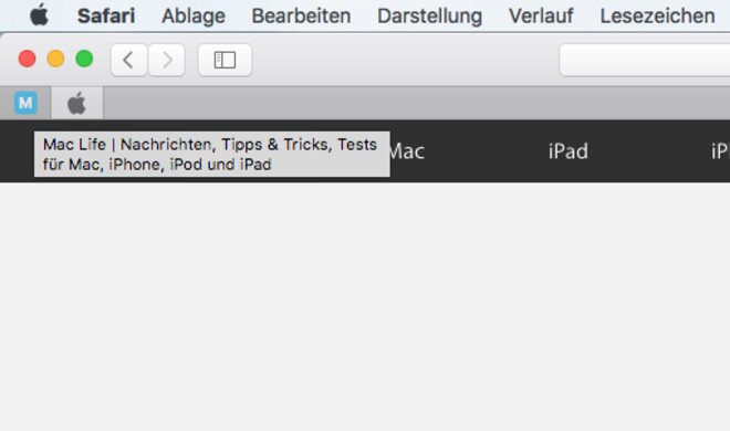 Wer die Lesezeichenleiste in Safari hässlich findet, bestimmte Seiten aber trotzdem im Schnellzugriff haben möchte – zum Beispiel das Webmail-Konto, die liebste Nachrichtenseite oder auch Facebook –, wird sich darüber freuen, dass man geöffnete Tabs jetzt am linken Rand der Tab- Leiste fixieren kann. Dort werden sie zwar ohne Namen, jedoch versehen mit dem Favicon der jeweiligen Seite abgelegt.
