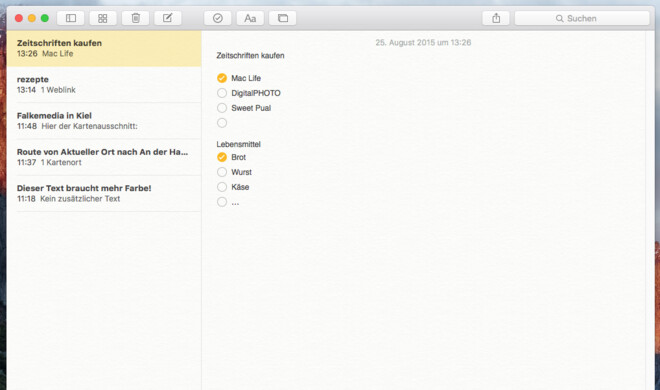 Die Notizen-App wurde grundlegend überarbeitet und erlaubt unter El Capitan unter anderem das Erstellen von Checklisten.
