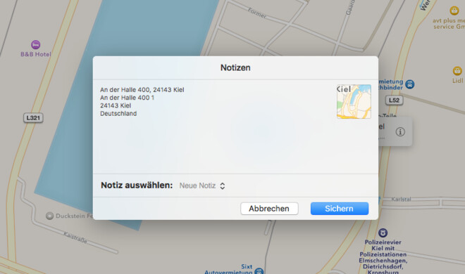 OS X El Capitan: Karte zu Notizen hinzufügen