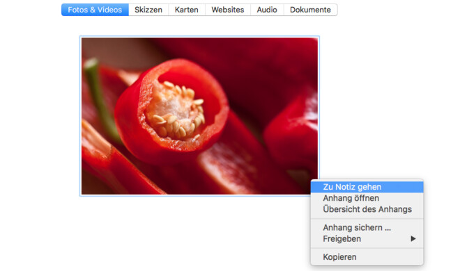 OS X El Capitan: Fotos und Videos zu Notizen hinzufügen