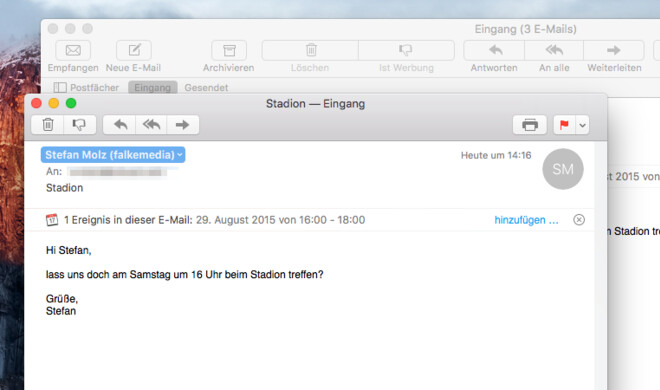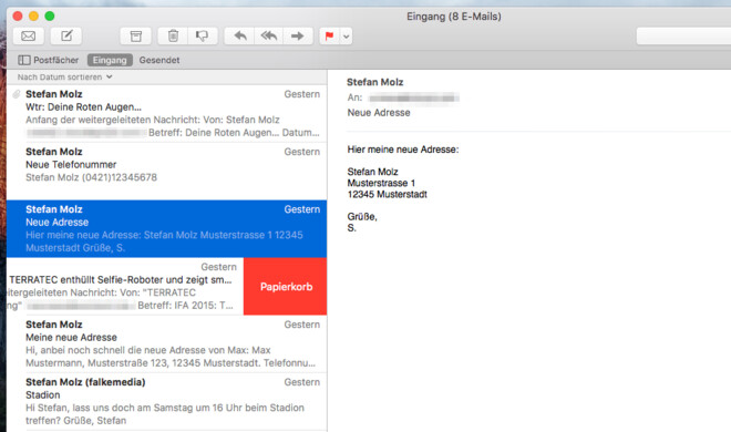OS X guckt sich viele Funktionen beim iPhone- und iPad- Betriebssystem iOS 9 ab. So gibt es nun auch für den Mac Wischgesten, um Mails als gelesen/ungelesen zu markieren oder gleich in den Müll zu werfen. Termine und Kontaktinformationen werden nun noch besser aus Mails herausgefiltert und mit dem Adressbuch und Kalender verknüpft. Wer mit vielen Mails zugleich hantiert, wird sich über die Einführung von Tabs freuen.