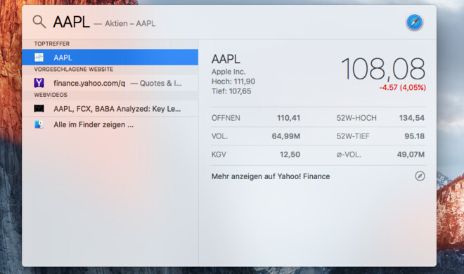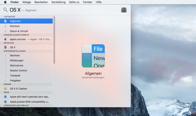 Die Spotlight-Suche wurde in OS X 10.11 deutlich verbessert.