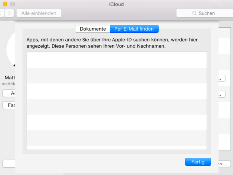 Damit man selbst für Sharing gefunden wird, wird es eine neue App-spezifische Einstellung gegen. Man wird Daten seiner Apple-ID für Apps freigeben, wenn man zum Beispiel von Kollegen oder für Projekte gefunden werden möchte. Die Einstellung „Per E-Mail finden“ erlaubt diese Konfiguration und befindet sich selbst im Kontrollfeld zu iCloud und dort innerhalb der Dokument-Einstellungen. Denn bislang muss man seine Apple-ID in Arbeitsgruppen für Numbers, Pages und Keynote mitteilen, wenn man zu Dokumenten eingeladen werden möchte.
