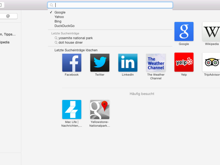 Beim Thema „Suche“ tut sich auch einiges. So verwendet Yosemite systemseitig die Suchmaschine Bing von Microsoft, wenn das Suchprogramm Spotlight genutzt wird. Spotlight wird immer auch Bing und Wikipedia abfragen. Aus diese Weise wandelt sich Spotlight zum Assistenzsystem à la Siri unter iOS. Bing und Wikipedia bereichern auch die Standard-Suche im iOS. Auf dem Mac bietet Apple eine neue Suchmaschine im Browser Safari. Hier kann DuckDuckGo gewählt werden. Dabei handelt es sich um ein Angebot, das nach eigenen Angaben auf Tracking und Profiling verzichtet.