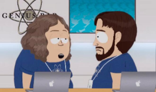 ... sagte der Affe und biss in die Seife.Southpark parodiert Apple Kyle Brofslovski aus Southpark liest Apples allgemeine Geschäftsbedingungen nicht. Durch das sture Weiterklicken einer iTunes-Aktualisierung meldet er sich...