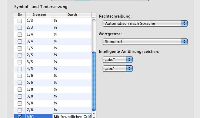 MfG – Mit freundlichen GrüßenDie Textersetzung von Mac OS X 10.6 nutzen Eine der Neuerungen von Mac OS X 10.6 ist die Symbol- und Textersetzung. Hierbei können Sie Buchstabenfolgen definieren, die dann, beispielsweise in TextEdit,...