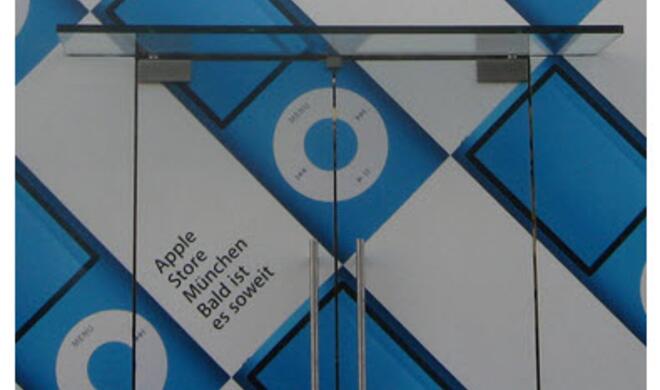 Apple Store blau-weißNeues aus der Rosenstraße: Apple Store München enthüllt Heute Mittag wurde der erste deutsche Apple Store enthüllt. Das Markenzeichen Apples ist bereits zu erkennen, die Fenster sind allerdings noch mit Werbefolien...