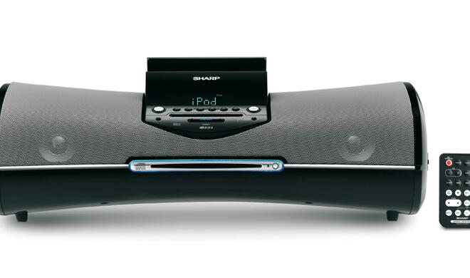 Klanggewaltiges Raumschiff Sharp DK-A10 HBK Es sieht schon ein wenig so aus, als würde es einem anderen Sonnensystem entstammen, Sharps Soundsystem mit der wenig einprägsamen Bezeichnung DK – A10 HBK.