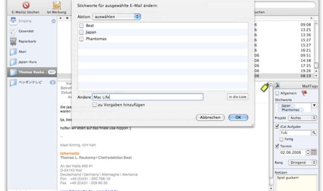 MailTags 1.2.1 Ohne Tags (Stichwörter) traut sich kaum noch ein Web2.0-Dienst auf den Markt: Ob YouTube, Flickr oder Ourmedia, Benutzer können ihre Beiträge nicht nur mit einem...
