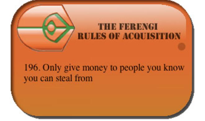 Ferengi Im Geschäftsleben schadet es nicht, vorauszuplanen – wenn nötig auch schon einmal hundert Jahre oder mehr.