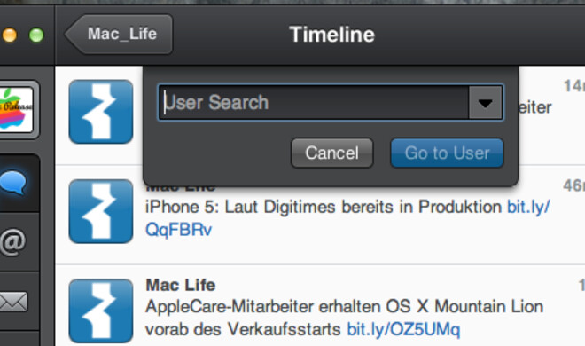 Benachrichtigungen unter 10.8Tweetbot für Mac: Vorabversion aktualisiert und um neue Funktionen ergänzt Neuigkeiten vom Twitter-Client Tweetbot für den Mac. Mit der neuen Vorabversion mit der Nummer 0.6.1 kann Tweetbot jetzt auch Benachrichtigungen über neue Tweets...