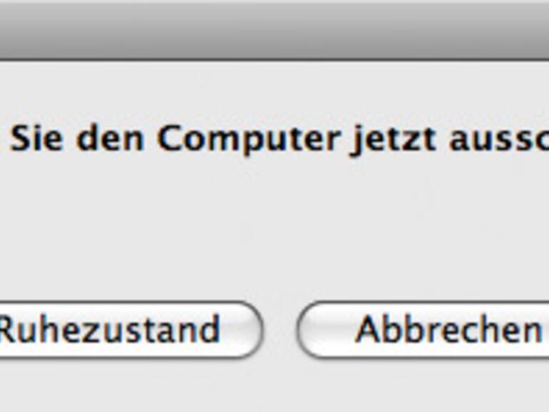 Wollen Sie Ihren Mac herunterfahren und dazu weder die Ein-/Ausschalttaste am Mac betätigen noch den Mac über das Apple-Menü ausschalten, so sollten Sie sich die folgenden Tastenkombinationen merken: Mit der Tastenkombination Ctrl-Auswerfen (Eject) wird das Fenster zum Ausschalten angezeigt, in dem Sie dann den gewünschten Befehl – Ruhezustand, Ausschalten oder Neu starten – aktivieren können. Soll der Mac umgehend und ohne Nachfrage heruntergefahren werden, betätigen Sie die Tastenkombination Ctrl-Alt-Cmd-Auswerfen (Eject).