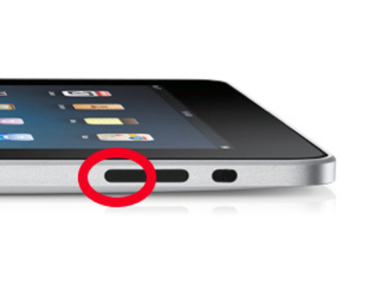 Auf den ersten Blick scheint auch das iPad über solchen einen „Stummschalter“ zu verfügen, doch dieses Bedienelement dient alleinig der Verriegelung der Bildschirmausrichtung in das Hoch- oder Querformat. Dennoch lässt sich das iPad ganz leicht zum Schweigen bringen: Hierzu hält man für einen kurzen Augenblick den unteren Teil der Lautstärkewippe an der rechten Seite des Gerätes gedrückt.