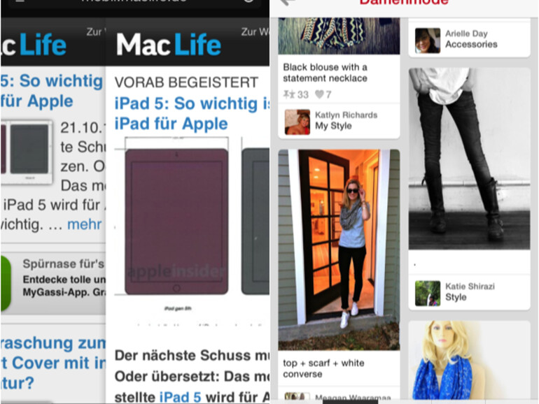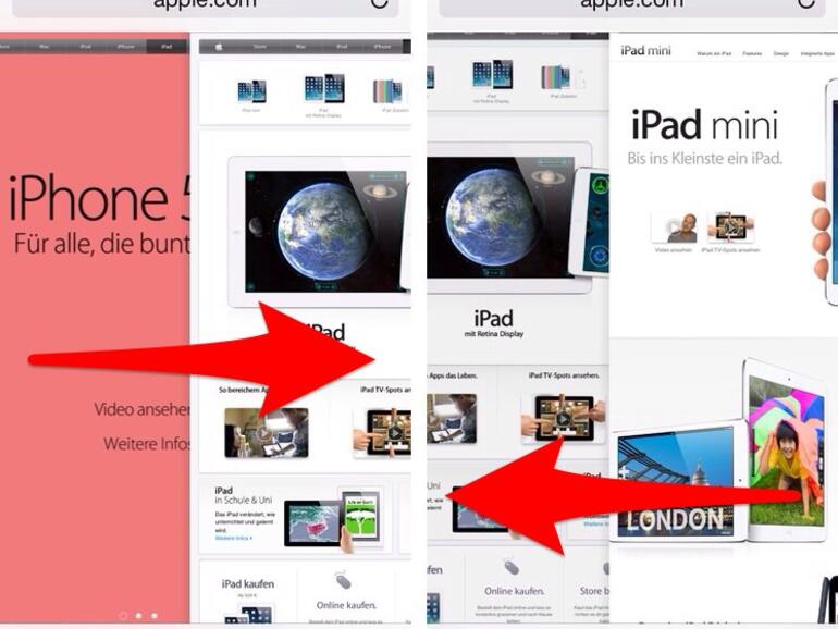 Da schon während des Schiebens der Inhalt angezeigt wird, eignet sich diese Navigationsmethode auch dazu, einen kurzen Blick auf die vorherige Seite zu werfen, ohne ganz zurückzukehren.