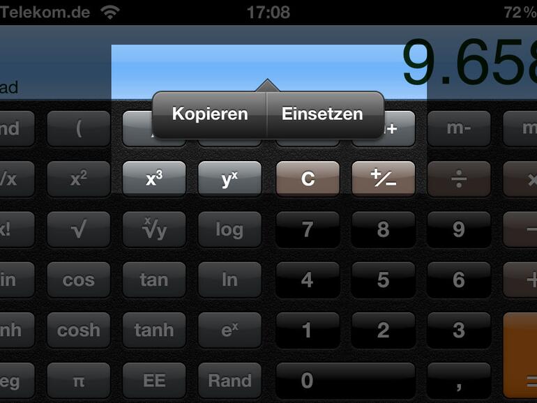 Aufgerufen wird die Zwischenablage durch längeres Tippen in die Eingabe-Zeile der Taschenrechner-App.
