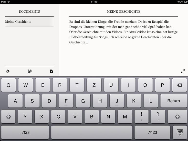Diese ist deutlich leichter als jeder Laptop. Und wenn Sie über kein iPad verfügen, reicht es sogar, wenn Sie die Tastatur mit Ihrem iPhone koppeln. Praktisch: PlainText synchronisiert bei Internetanbindung mit der Dropbox, von wo aus Sie die Textdateien an andere Nutzer freigeben oder mit anderen Endgeräten bearbeiten können.