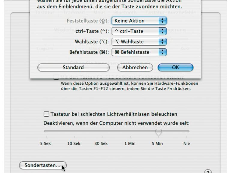Im Bereich „Tastatur & Maus“ unter dem Reiter „Tastatur“ findet man hierzu links unten den Knopf „Sondertasten“. Klickt man diesen an, erscheint eine Liste, in der auch die „Feststelltaste“ ganz oben zu finden ist. Hier lässt sich mit dem Aufklappmenü „keine Aktion“ einstellen und schon bleibt diese Taste wirkungslos. Ebenso lassen sich andere Sondertasten auf die Feststelltaste legen, allerdings nicht alle über das Programm Systemeinstellungen. Für andere Tasten benötigen Sie weitere Hilfsmittel.