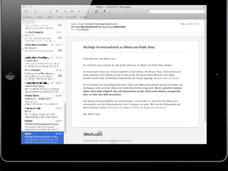 Dank einem zweiten Bildschirm lässt sich beispielsweise Mail.app immer offen halten, währen der Hauptbildschirm „sauber“ bleibt