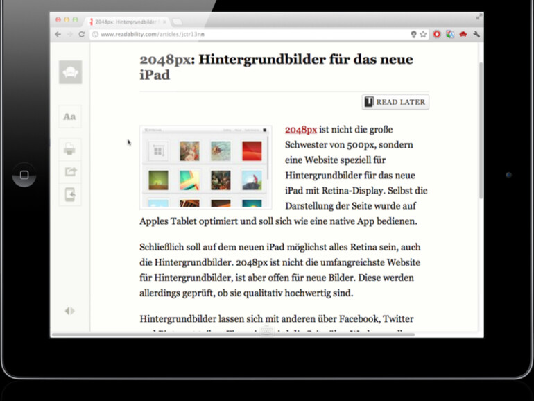 Soll das iPad einfach nur als zweiter oder dritter Bildschirm dienen, verhelfen Apps wie Air Display* zum gewünschten Resultat. Nachdem die Helfer-Anwendung auf dem Mac und die eigentliche App auf dem iPad installiert sind, erkennt OS X das iPad als zweiten Bildschirm automatisch. Dieser lässt sich im Anschluss wie auch andere externe Monitore hinsichtlich Auflösung, Farben und relativer Position zum Hauptbildschirm konfigurieren. Besonders interessant an Air Display auf einem iPad der dritten Generation, ist die Möglichkeit Apples neuen HiDPI-Modus für hochauflösende Grafiken zu aktivieren. Allerdings muss mit Air Display sowie anderen Apps, die das iPad als Monitor funktionieren lassen, die Einschränkung in Kauf genommen werden, dass es zu gewissen Verzögerungen kommt. Für Spiele ist Air Display somit nicht geeignet, für Dokumente, Webseiten oder andere Informationen dafür umso besser.