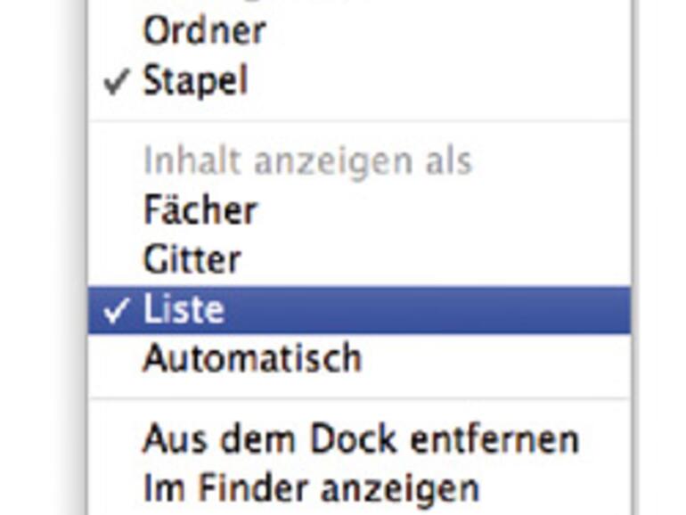 Nun endlich kann man wieder seine in Ordnern strukturierten Programme oder deren Aliase als eine Art „Startmenü“ ins Dock aufnehmen. Auf diese Weise bekommt man schnell Zugriff auf viele Programme und verbindet die Vorzüge des Docks mit denen der Listenansicht im Fenster.