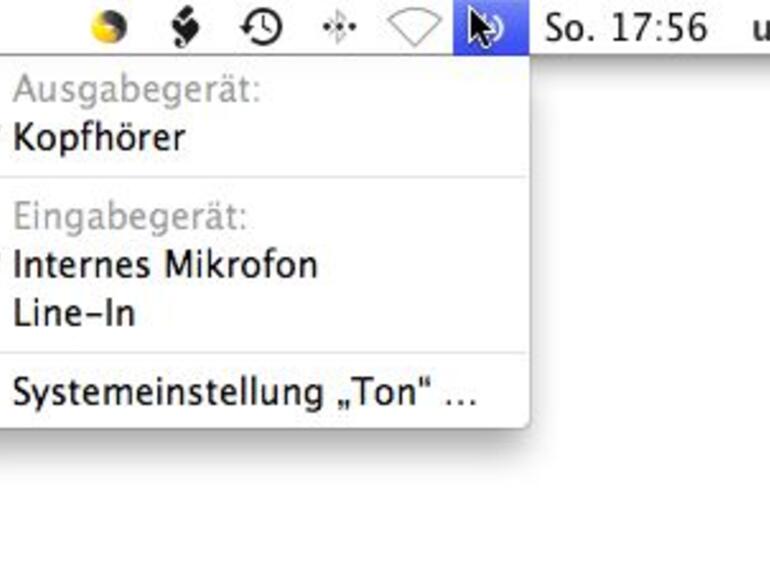 Klicken Sie dazu auf das Lautsprechersymbol rechts in der Menüleiste des Finders und halten Sie dabei die [Wahltaste] gedrückt. Nun wählen Sie das entsprechende Gerät aus, zum Beispiel ein über USB angeschlossenes Headset oder auch USB-Lautsprecher.