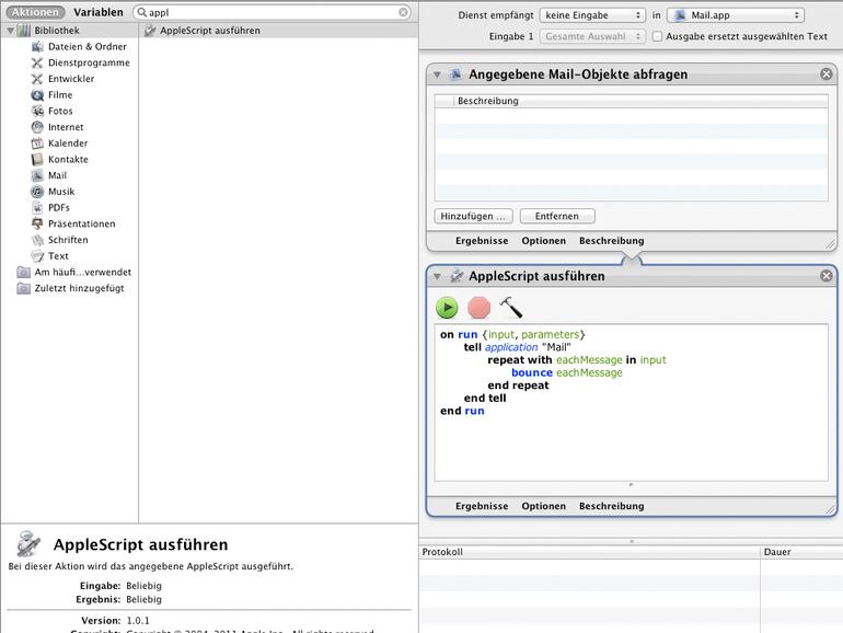 4. Bewegen Sie AppleScript ausführen unter die Aktion