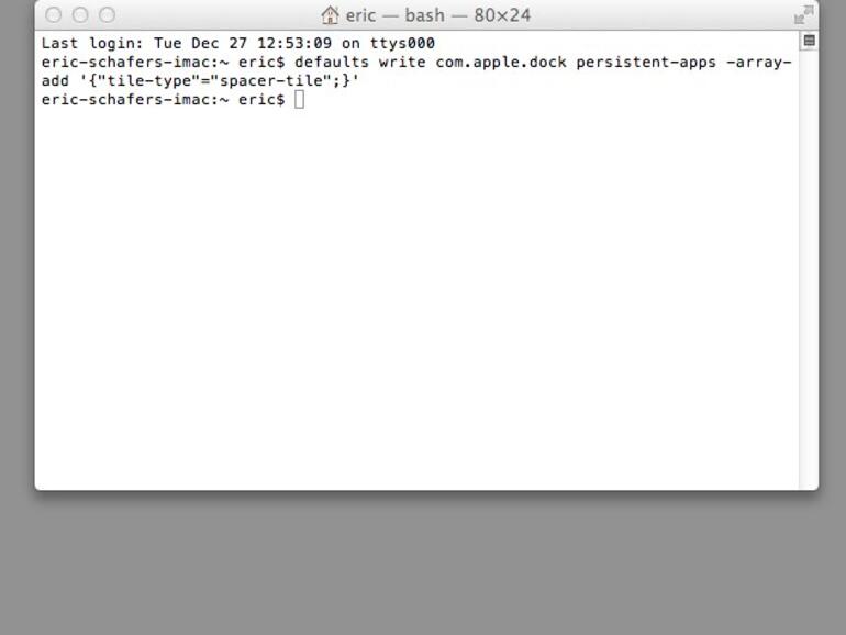 In OS X Lion lässt sich leicht ein Abstandshalter zwischen den Icons im Dock erzeugen. Dazu wird die App Terminal aus dem Dienstprogramme-Ordner aufgerufen und darin die folgende Befehlszeile eingegeben: