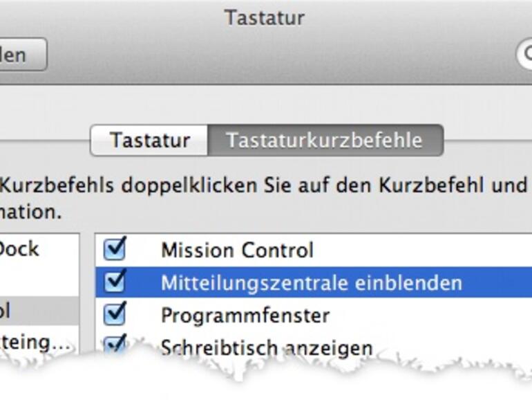 Selbst auf Apples Multitouch-fähiger Magic Mouse funktioniert das von Apple proklamierte „einfache Streichen“ nicht. Egal, ob nur schnell die anstehenden Termine überflogen oder ein paar Tweets abgesetzt werden sollen: An einem Klick auf das neue Symbol rechts der Spotlight-Lupe scheint kein Weg vorbei zu führen. Doch auch die Anzeige der Mitteilungszentrale kann in den Systemeinstellungen unter Tastatur einem Tastenkürzel zugewiesen werden. Im Reiter Tastaturkurzbefehle und der Kategorie Mission Control findet sich an zweiter Stelle Mitteilungszentrale einblenden. Freunde von Tastaturküzeln, können an dieser Stelle eine passende Kombination eingeben, beispielsweise alt + Tabulator (⌥⇥).