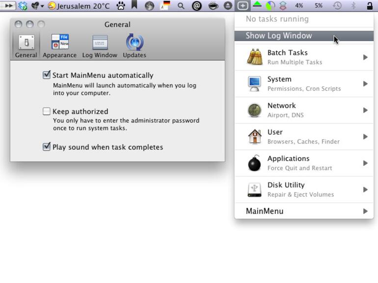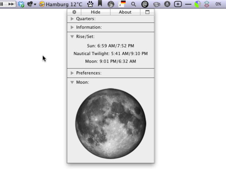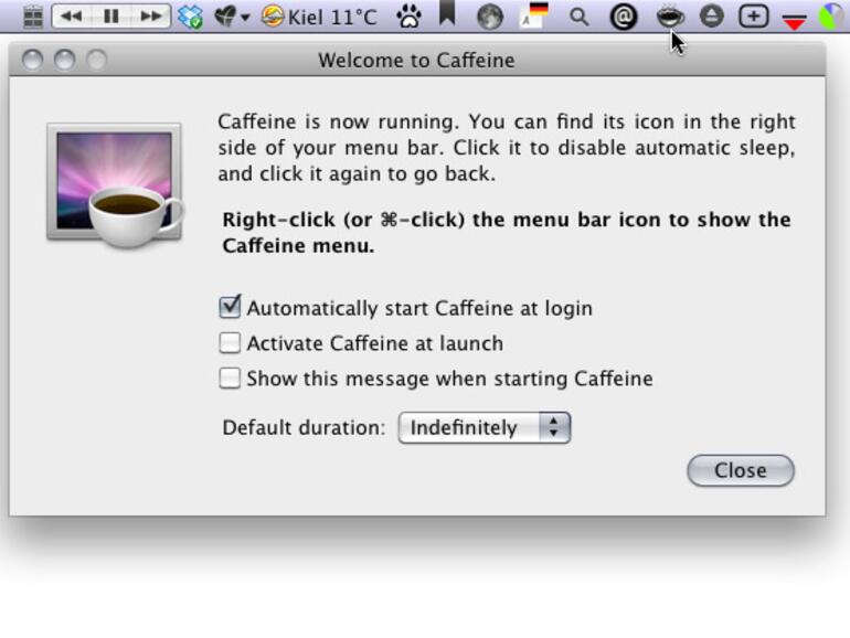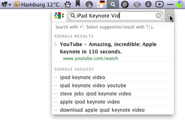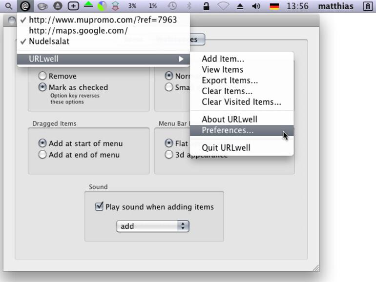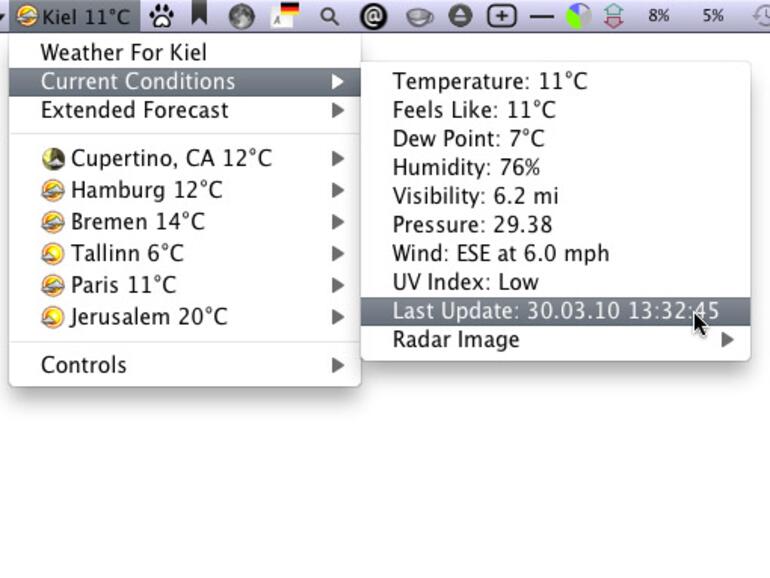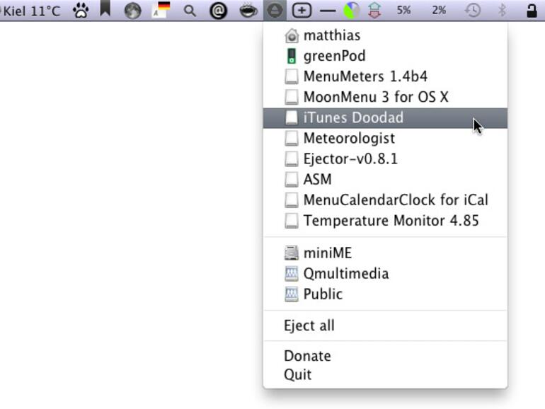 Bereits hinter diesen Icons verstecken sich Menulets. Wer mag, kann deren Position in der Menüleiste ganz leicht verschieben: Hierzu drückt man die Befehls-Taste und fasst das Icon mit der Maus an. Nachdem die Wunsch-Position gefunden ist, lässt man los, andere Menulets weichen zur Seite. Auf diese Art und Weise kann man die hauseigenen Apple-Menulets auch entfernen: einfach aus dem Menü herausziehen.