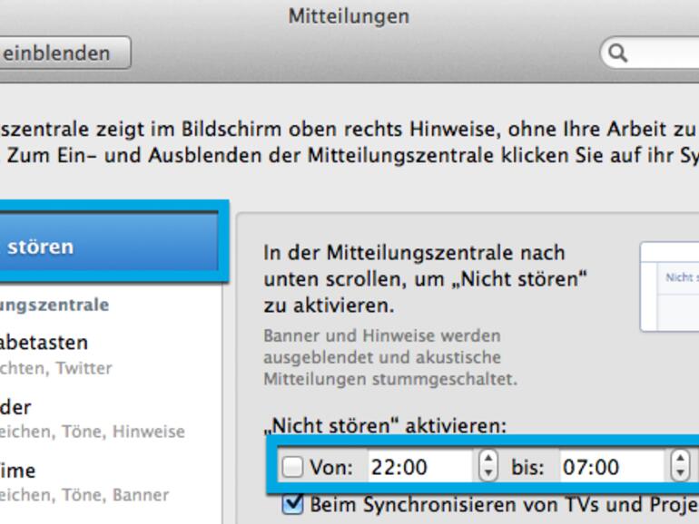 Deutlich eleganter ist allerdings die Einrichtung der Nicht-stören-Funktion in den Einstellungen unter Mitteilungen. Denn an dieser Stelle lässt sich eine bestimmte Zeit festlegen, an der Sie Ihre Ruhe haben möchten.