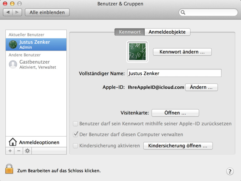 Doch keine Angst, wenn der Mac mit der Apple ID verknüpft wurde, kann diese ebenfalls zur Anmeldung verwendet werden. Die Verknüpfung in den Systemeinstellungen unter Benutzer & Gruppen ist im Reiter Kennwort“mit nur einem Klick möglich. Ein weiterer Vorteil: Nach der Verknüpfung kann die Bildschirmfreigabe oder der Datenaustausch von einem anderen Mac einfacher erfolgen.