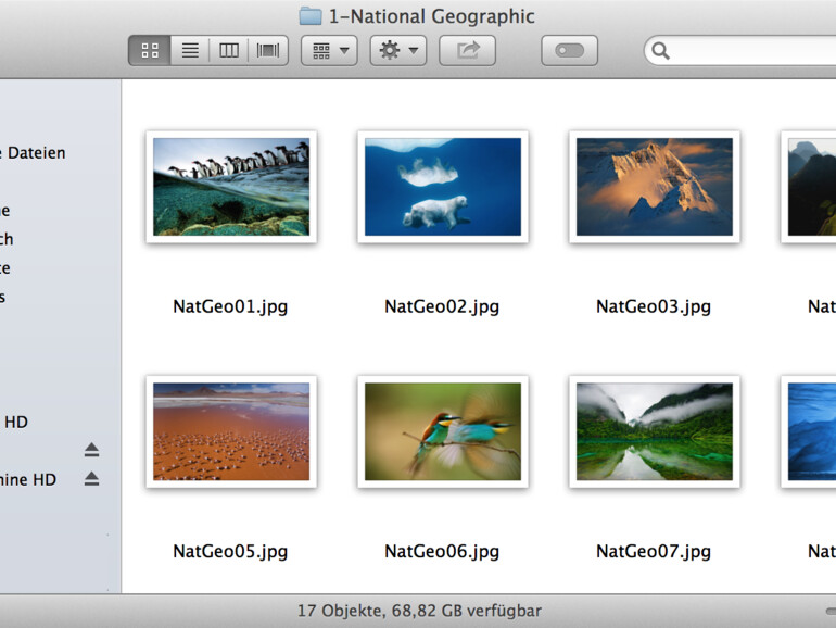 Die unter /Library/Screen Savers/Default Collections gespeicherten Ordner 1-National Geographic, 2-Aerial, 3-Cosmos und 4-Nature Patterns dienen eigentlich als Quelle für einen der 14 Foto-Bildschirmschoner. Doch mit einer Auflösung von 3200 x 2000 Bildpunkten eignen sich einige der Aufnahmen auch wunderbar als neues Hintergrundbild – selbst für das MacBook Pro mit Retina Display.
