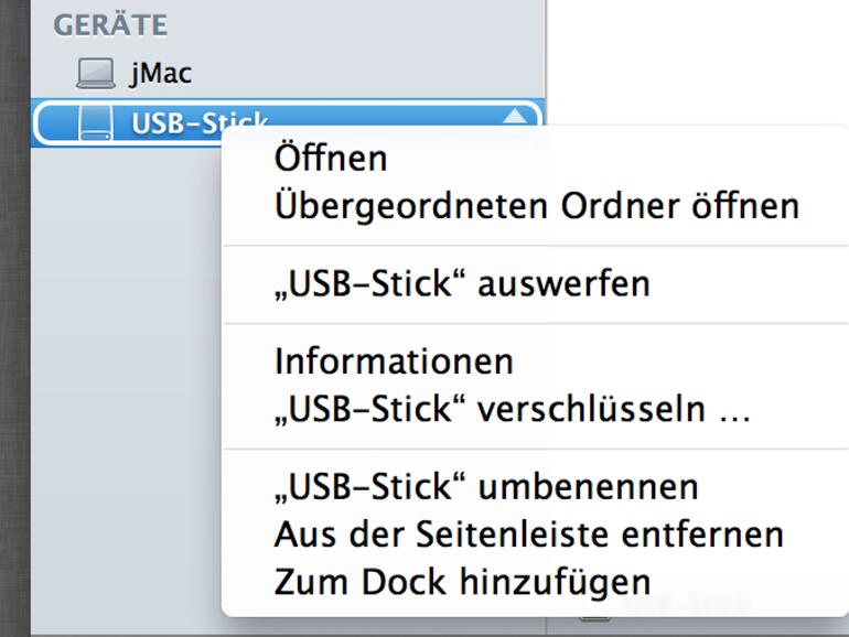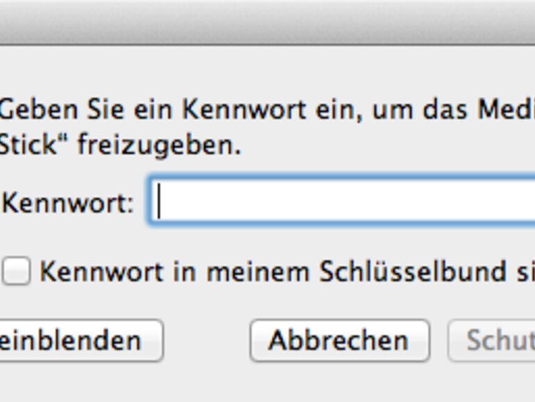 Beim nächsten Anstöpseln des Sticks oder der Festplatte bittet OS X erst um das Passwort, bevor die gespeicherten Dateien im Finder angezeigt werden.
