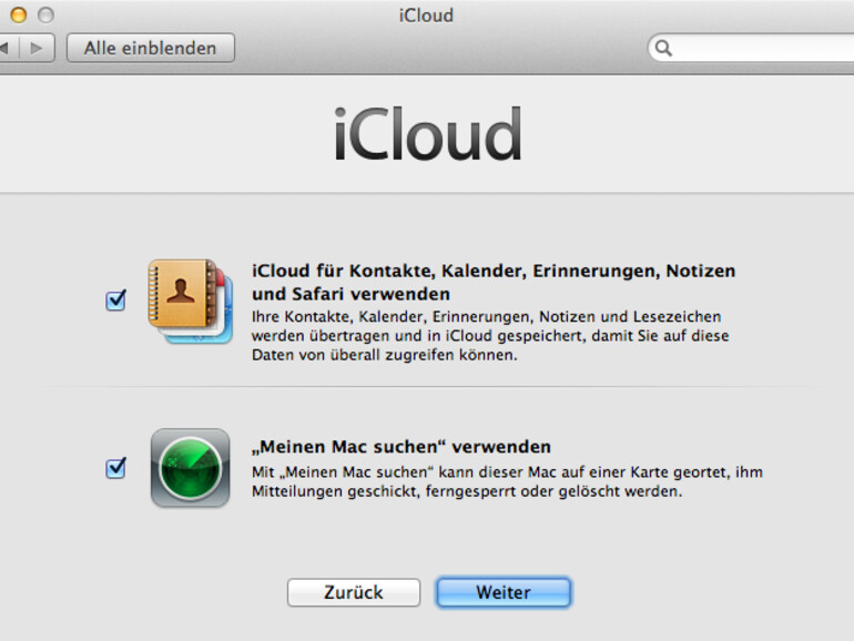 Welche Dienste aktiviert werden sollen, lässt sich in den iCloud-Systemeinstellungen einrichten