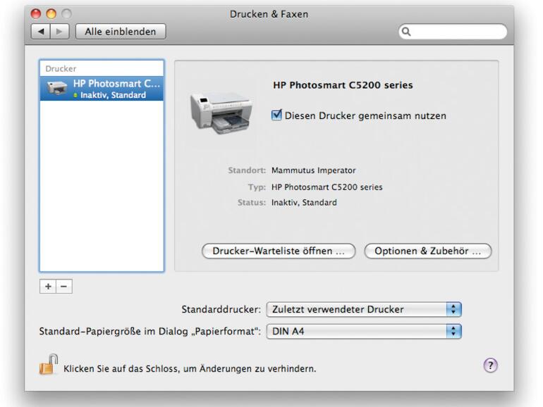 Umgehend wird der gewünschte Schreibtischdrucker erstellt. Um nun ein Dokument zu drucken, genügt es, das entsprechende Dokument mit der Maus auf das Druckersymbol auf dem Schreibtisch zu ziehen. Das Dokument erscheint sofort in der Warteschlange und wird anschließend ausgedruckt. Wollen Sie den Schreibtischdrucker wieder los werden, so legen Sie das Symbol einfach in den Papierkorb