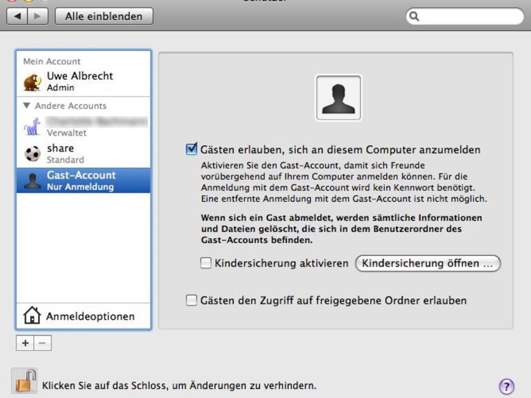 Außerdem werden alle Daten im Benutzerordner des Gast-Kontos beim Abmelden gelöscht.