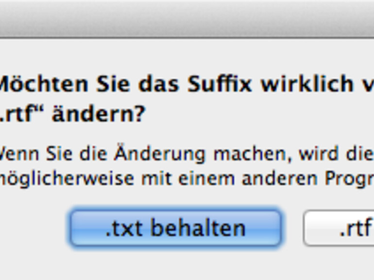 Während die Warnung vor allem unerfahrene Mac-Anwender vor nicht zu öffnenden Dateien bewahren will, stört die Warnung OS-X-Kenner, wenn mehr als eine Datei mit einem neuen Suffix versehen werden soll. Abhilfe schafft folgender Terminal-Befehl: