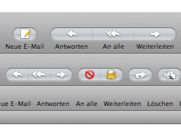 Genauso kann man auch in der Anwendung Mail die Darstellung verändern, hier lässt sich allerdings nicht zwischen großen und kleinen Symbolen wechseln. Hält man jedoch zeitgleich die Befehls- und die Optionstaste gedrückt, wird das Fenster mit den zur Verfügung stehenden Darstellungsoptionen eingeblendet. Dies funktioniert im Übrigen ebenso bei vielen anderen Programmen, beispielsweise in Pro-Applikationen wie Aperture.